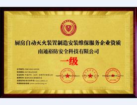 厨房灭火装置制造安装维保服务企业资质荣誉证书
